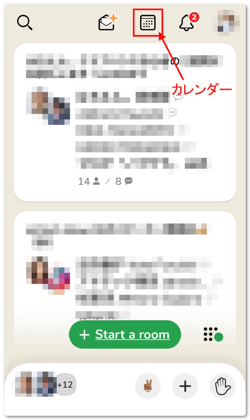 ルームを突然作っても余程の有名人でないと参加してもらえないので、画面上部にあるカレンダーアイコンをタップして事前に開始時間を登録しておき、予告しておくことをオススメいたします。
