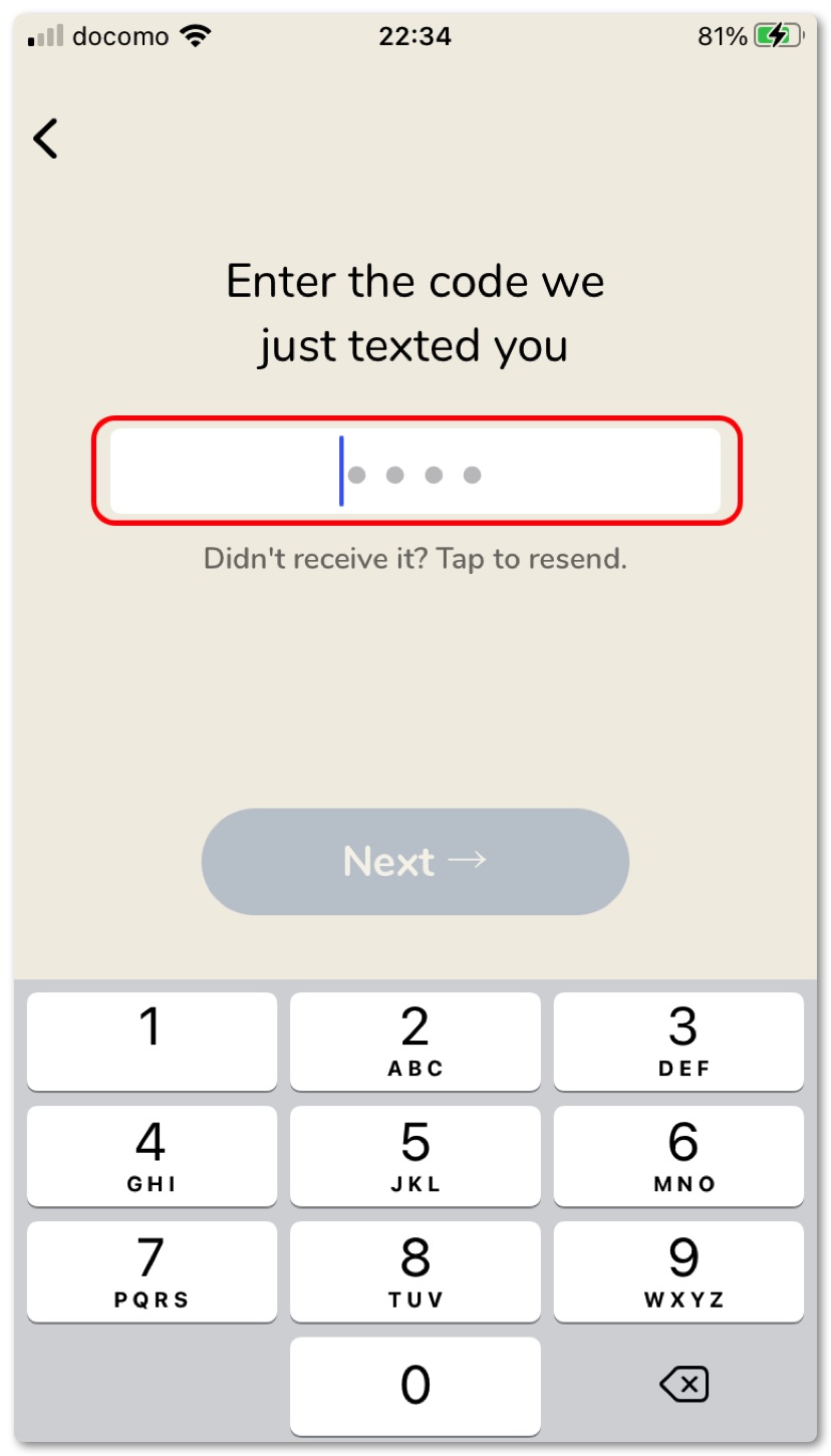 招待されたらまずアプリを起動させて自分の電話番号を登録します。