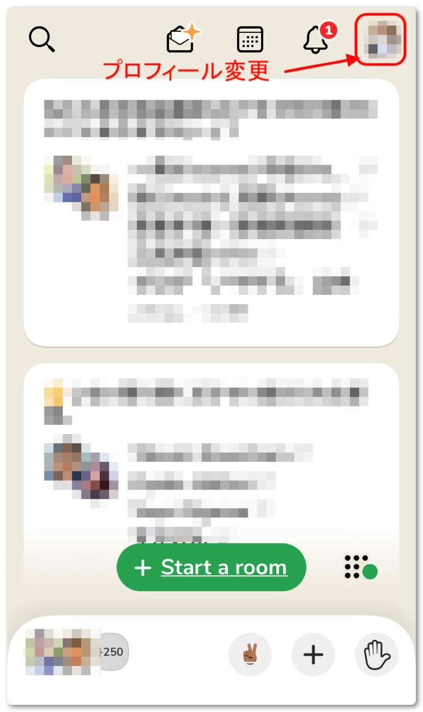プロフィールの変更は右上の自画像のアイコンをタップします。