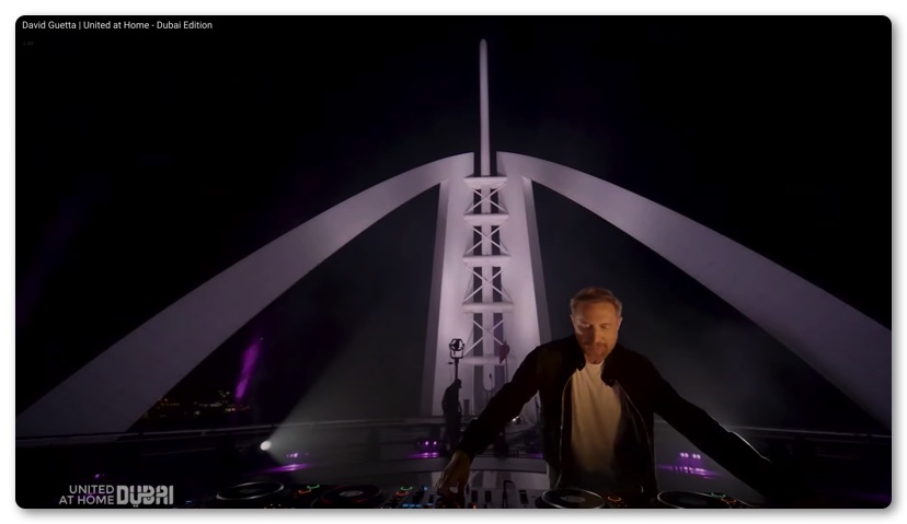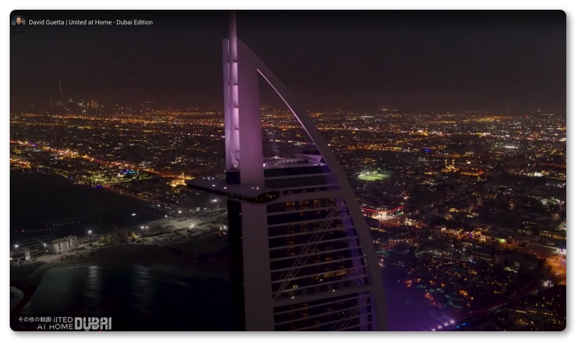 当日23時からライブが始まり鑑賞しましたが、もう最初の時点でただ者ではないことがわかりました。今回のライブはドバイにある高さ830mのブルジュ ハリファのヘリポートを舞台にDJが繰り広げられていました。周囲に複数台のカメラのほか、ドローンがいくつも飛んでいて空中からDJ風景を映し出しています。ドバイの夜景がバックに写り込んでおり、とてつもなく美しい光景が広がっていました。