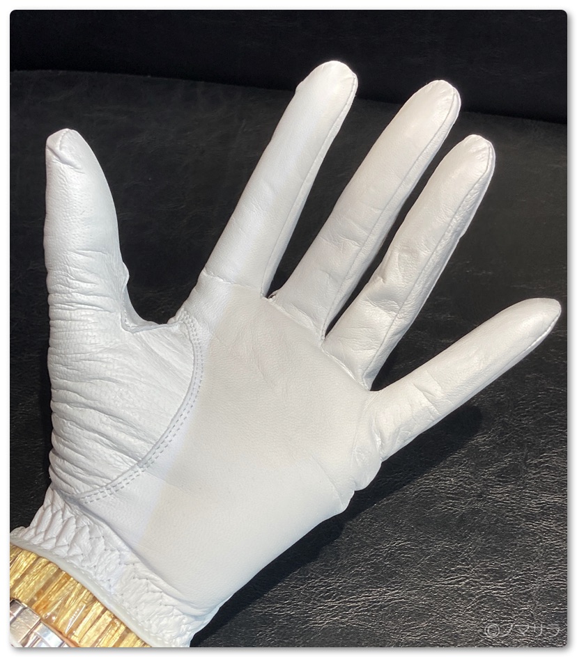 つけ心地はカブレッタの羊革製なのでしっとりとしていて最高の部類に入ります。