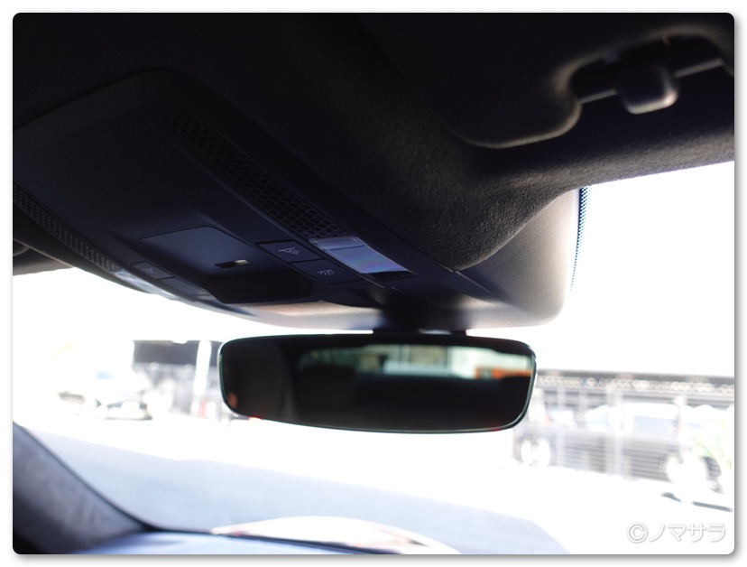後方のウインドウはかなり寝ているため視界は決して良いとは言えませんが後続車を確認する程度なら問題ありません。バックの時は全方位モニター(上から車を俯瞰した映像)があるので背の低い子どもなどがいてもモニターを見ていれば視認できます。