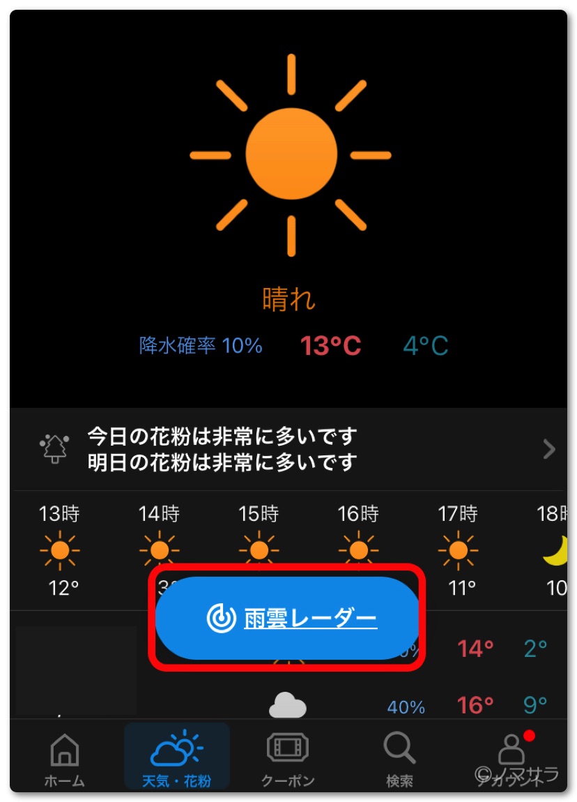 「雨雲レーダー」をタップ