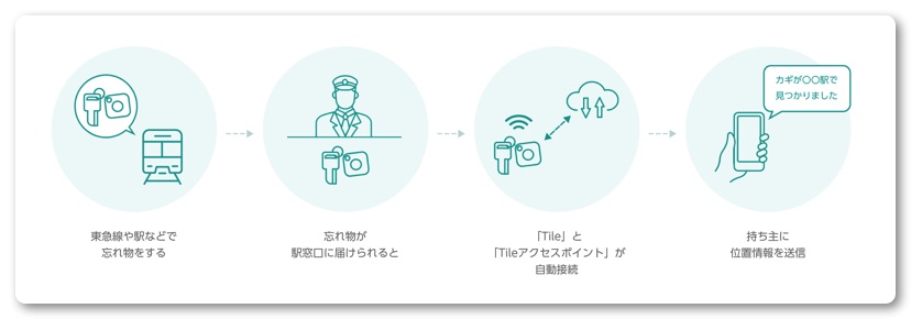 さらに「Tile」とBluetooth®で自動接続する「Tileアクセスポイント」を東急線全線88駅に設置されました。「Tile」が取り付けられた鍵や財布などのお忘れ物がアクセスポイント付近に届けられると自動接続し、クラウド経由で位置情報が持ち主のアプリに通知されます。まずは東京急行電鉄株式会社との取り組みですが今後他社も追随するような気がします。