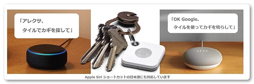 AppleのSiri、Amazonのアレクサ、GoogleのHomeなどの音声入力でTileを探すこともできます。呼ぶだけで音を鳴らして知らせてくれます。