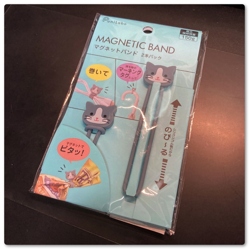 さらに目印としてリヒトラブのにゃんこのマグネットバンドをくくりつけました。これで盗ったところを見つけた場合「傘を間違えた」という言い訳は通用しません。