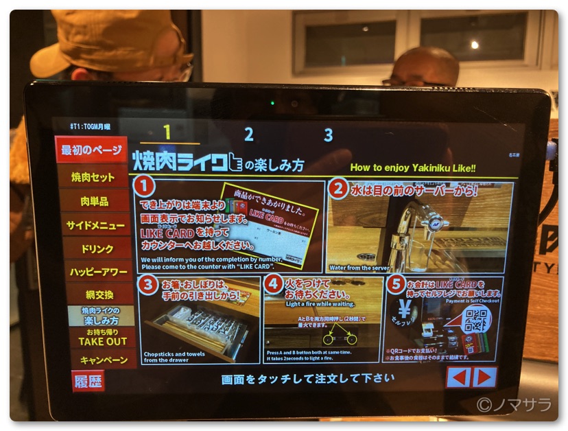 注文が済んだら「火をつけてお待ち下さい」と画面に出たので自分で火をつけました。すべて画面に表示されるので、スタッフは不要。