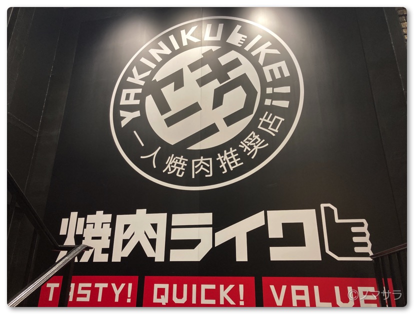 これだけリーズナブルにできるのは肉の仕入れ方法を工夫しているだけでなく徹底的に無駄を省いたオペレーションと回転率の高さにあります。飲食店の経費において人件費の比率は高く、これを抑えることができれば自ずと価格はお値打ちにできます。そして、おひとり様ばかりなので会話をしながら食事することがなく短時間で食べ終えるため回転率はめっちゃ高くなります。また店舗が2階なので家賃は1階に比べてかなり安いのも理由のひとつでしょう。