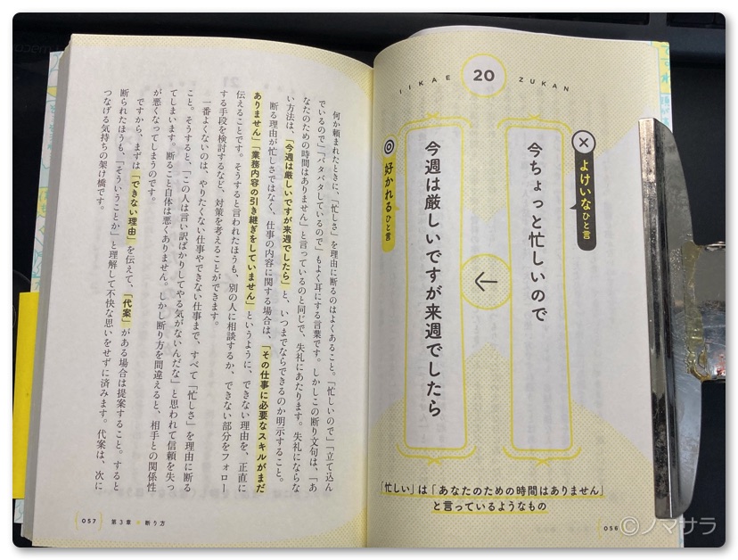 かなりのボリュームがあるので、右ページを読んで気になったところだけ左ページの解説を読むというだけでも、かなり人間関係がスムースになるはず。