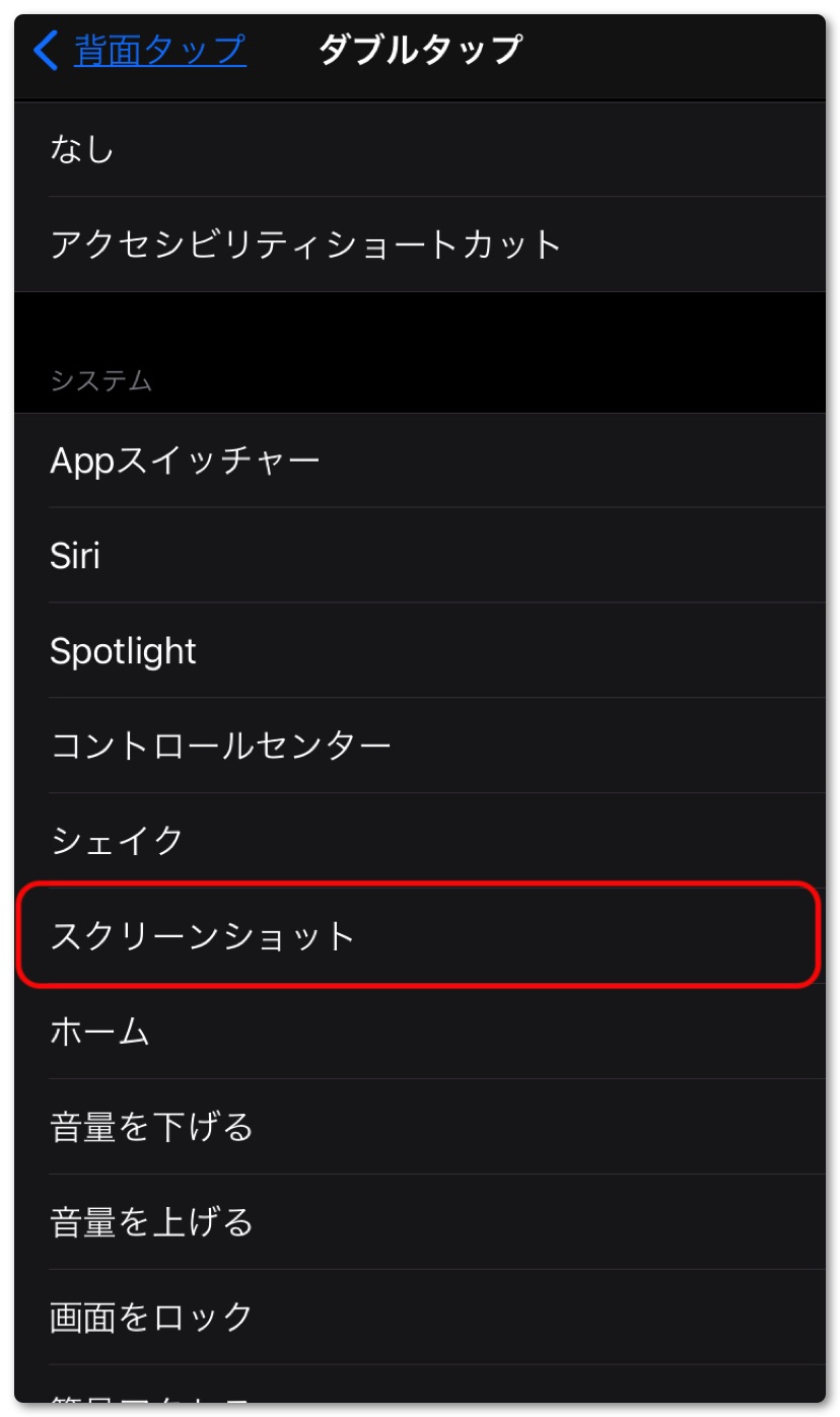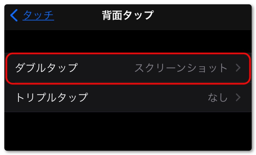 とりあえず「ダブルタップ」は「スクリーンショット」を選択しました。