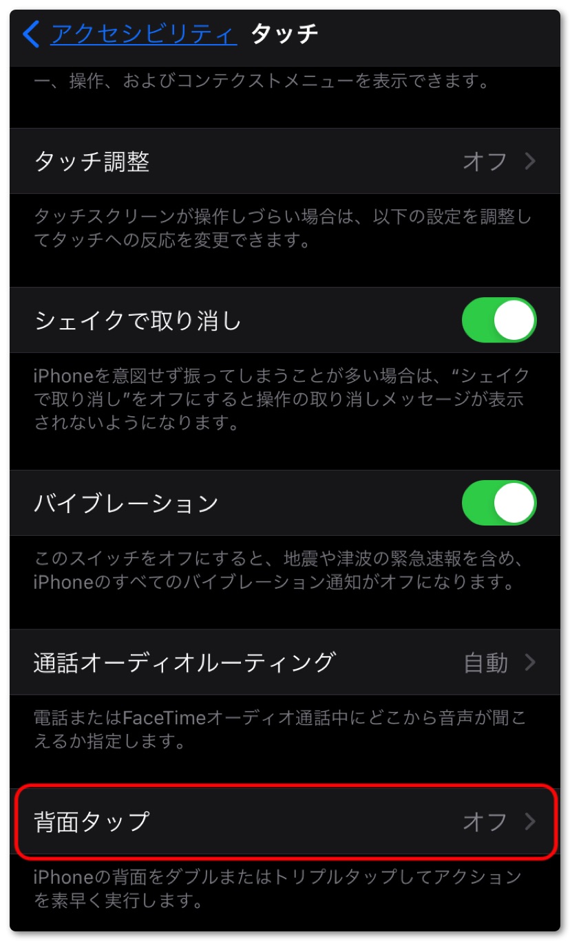 一番下にある「背面タップ」をタップ。