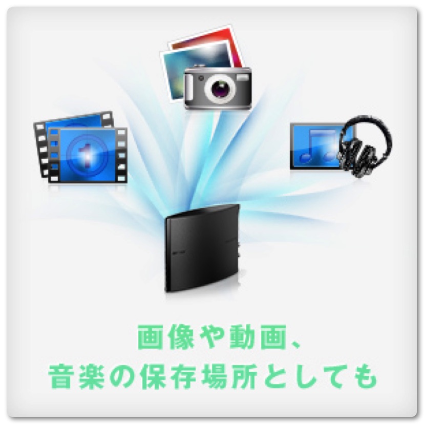 Windows・Macのデータの保存場所として使うことも出来ます。また、保存したメディアファイルはネットワークメディアプレイヤーから再生することができます。