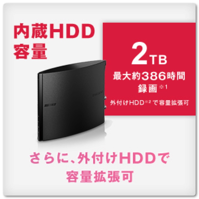 そしていよいよ3月末に新製品が発売されます。新しいモデルは内蔵ハードディスクが容量アップ。1TBから倍量の2TBになり最大約386時間もの録画が可能になりました。