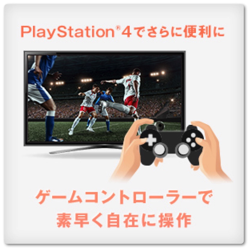 torne PlayStation4を使えばテレビ画面で番組が視聴できる。コントローラーを使った簡単操作で番組検索やテレビ番組の録画がゲーム感覚でサクサク行える。