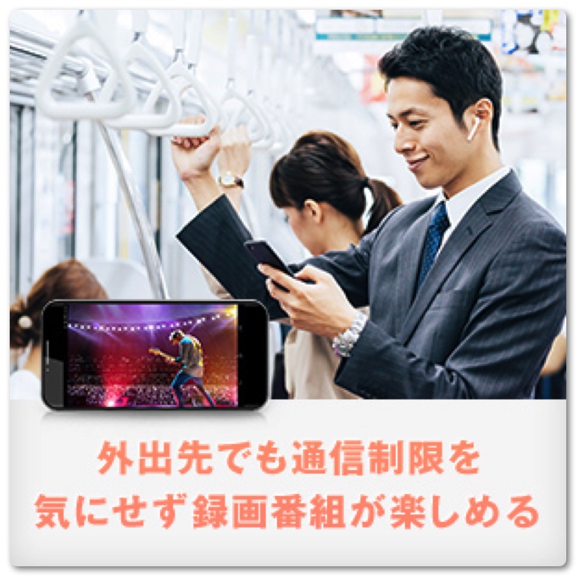 なお、録画した番組はiPhoneやiPadに保存して持ち出すこともできますので、外出先や通勤などで鑑賞することができます。もちろん、通信容量は全く減りません。安心して高画質の番組を楽しむことができます。