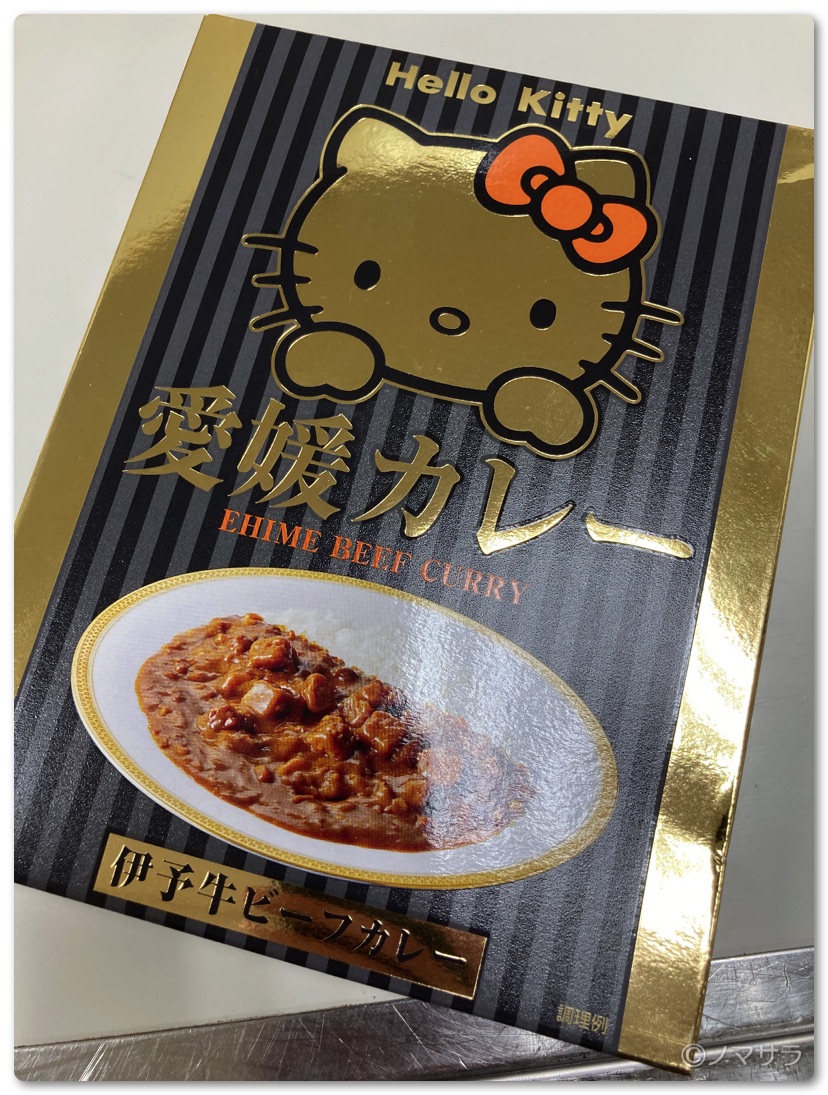 もう一方は、キティちゃんが印刷され金色の箱に入って「愛媛カレー」とデカデカと書かれた伊予牛ビーフカレー。