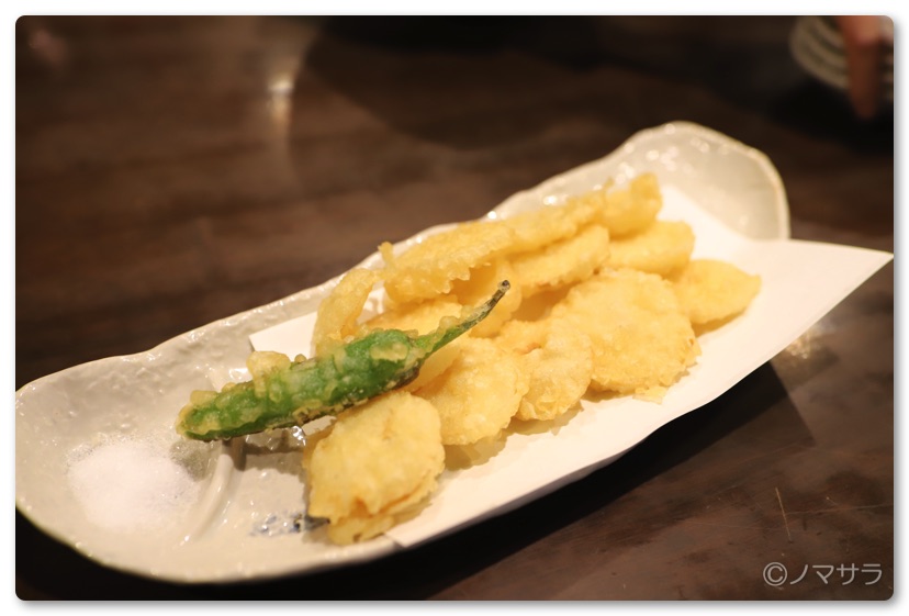 ニンニクの天ぷらはニンニク臭くなく、ホクホクで里芋のような食感。