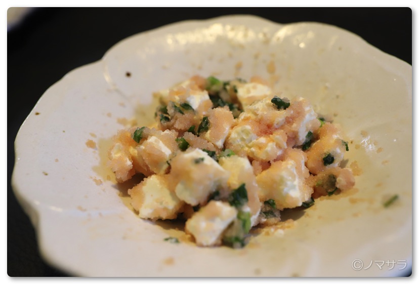 それはクリームチーズに明太子をまぶしてネギをたっぷりあえたもの。特に焼いたり加工する必要もなくチーズをちぎって明太子を混ぜるだけで簡単に出来上がります。口の中に入れるとクリームチーズのねっとりとした舌触りとチーズの芳醇な香り、明太子のプチプチとした食感がクセになります。