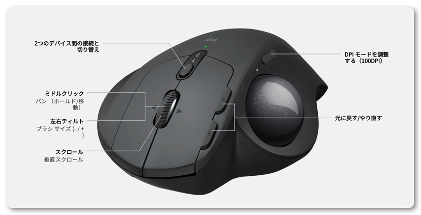 ロジクールのワイヤレストラックボールマウス「MX ERGO」のアプリ固有カスタマイズが超絶便利!