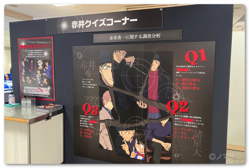 また赤井クイズコーナーがあり、クイズに回答して正解すると非売品の缶バッジが貰えます。こちらは無料なのでぜひチャレンジしてみてください。