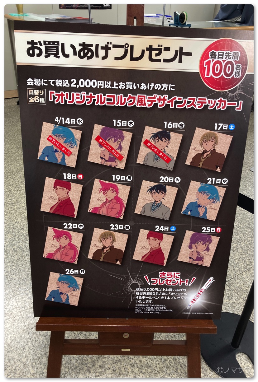 このイベント限定品があり、ここでしか手に入らないため人気を博しています。会場では税込2,000円以上の購入でステッカーが貰えます。税込5,000円購入なら、ステッカーに加えてオリジナル3色ボールペンが貰えます。どちらも数量限定なのでお早めにどうぞ。