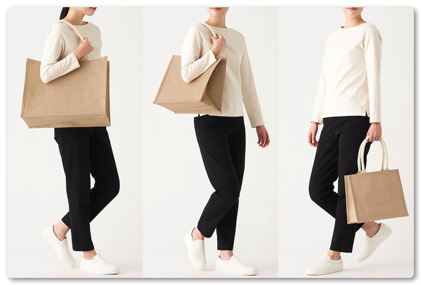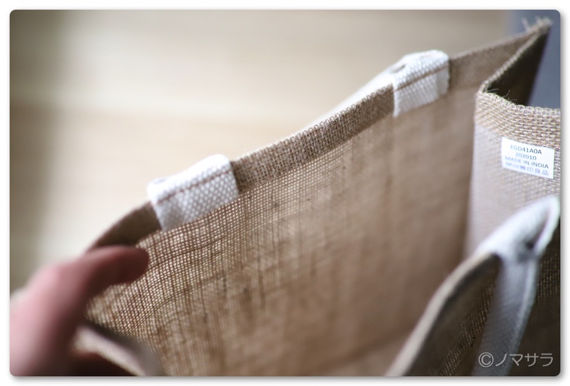 この無印良品のジュートバッグは見た目もオシャレで持ち手もしっかりしていたので「1,500円ぐらい?」と答えたら、なんとB5サイズは税込190円という衝撃的なお値段。ちなみにA4サイズは250円、A3サイズは290円と同じく格安。ここまで価格を外したのは久しぶり。いくら素材が安価といっても裁断して縫製し組み上げ、輸送するコストを考えるとどう考えても採算が合いません。