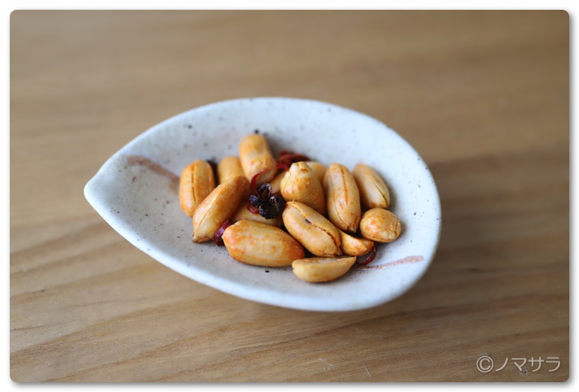 「麻(マー)ピー」はマーラー油で味付けしたピーナッツと、花椒・唐辛子がミックスされておりクセになる美味しさ。ビールなどのおつまみとして最適ですが、飲まないワタクシは炭酸水と一緒に楽しんでいます。