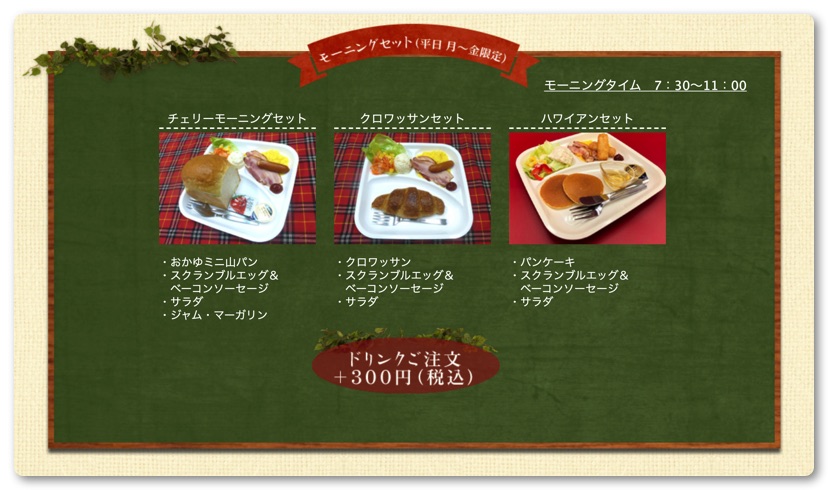 300円プラスすれば、結構豪華な内容になります。まだ注文したことはありませんが…。朝、がっつり食べたい方はいいかもしれません。