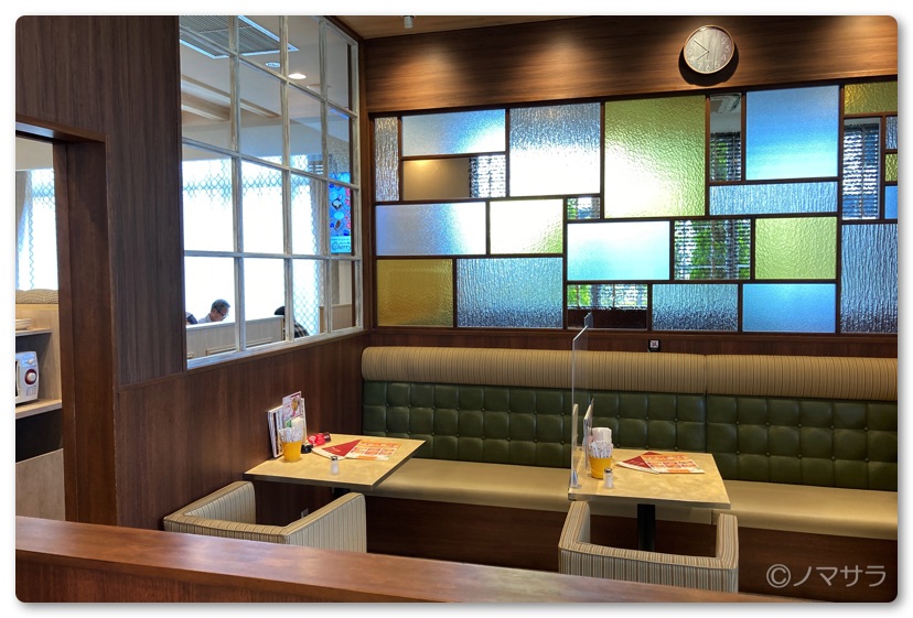 店内は明るく開放的。テーブルやカウンターなど様々なタイプの席があります。