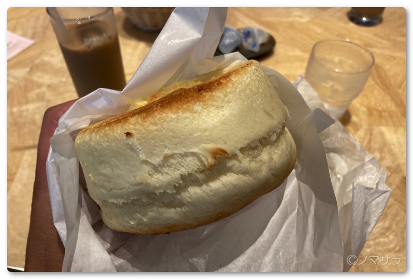 マフィンはフワフワで口当たりがよく、中のエッグサラダと相まって口の中が幸せになります。色々食べましたが、これが一番美味しいのでオススメ。