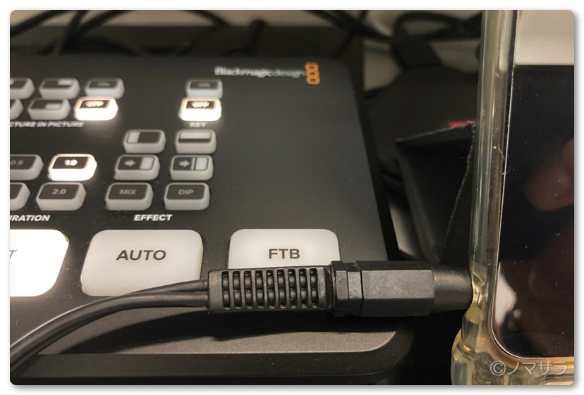 そしてもう一つはiPadMiniにイヤホンジャックを挿すという方法ですが、挿すタイミングがポイントになります。まずはHDMIアダプタをATEM Miniに接続してからイヤホンジャックを挿し込みます。iPadMiniの仕様として後から接続したものが優先されるということを初めて知りました。イヤホンジャックを挿してからHDMIアダプタを挿し込んでいたため、HDMIが優先されて音がミキサーに流れていなかったということがわかりました。