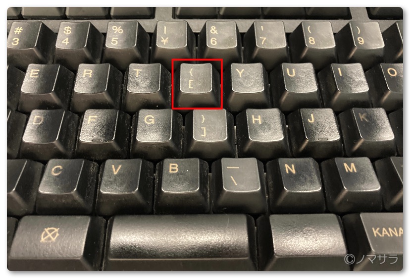 読点を出すためには本来3段目一番右上にあった「 [ 」を割り当てる必要があります。ワタクシの場合キートップを入れ替えているのでキーボードの中央付近、「T」と「Y」の間にあります。