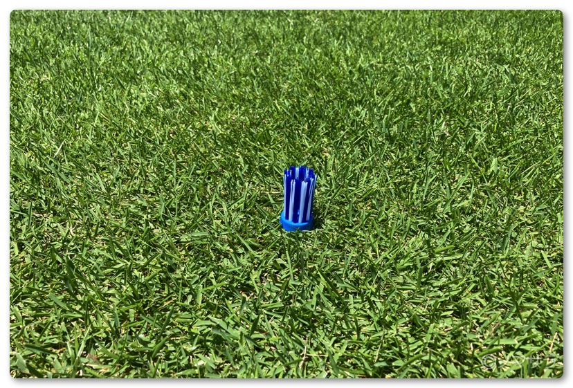 この一風変わったティーは父親とラウンドしたときにひとつ貸してもらい試しに使ってみたところ、なかなか良かったのでゴルフ5で再度購入しました。グラスティは箒の先のようなナイロン製のブラシが上向きに付いています。この上にゴルフボールを乗せると、ちょうどいい高さになります。