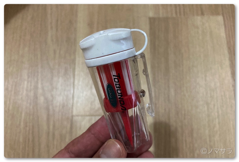 ティーショット使用後は付属のケースに入れて保管できます。ベルトクリップがあるのでとても便利。ふた内部の凸部分でブラシの形状を保持します。