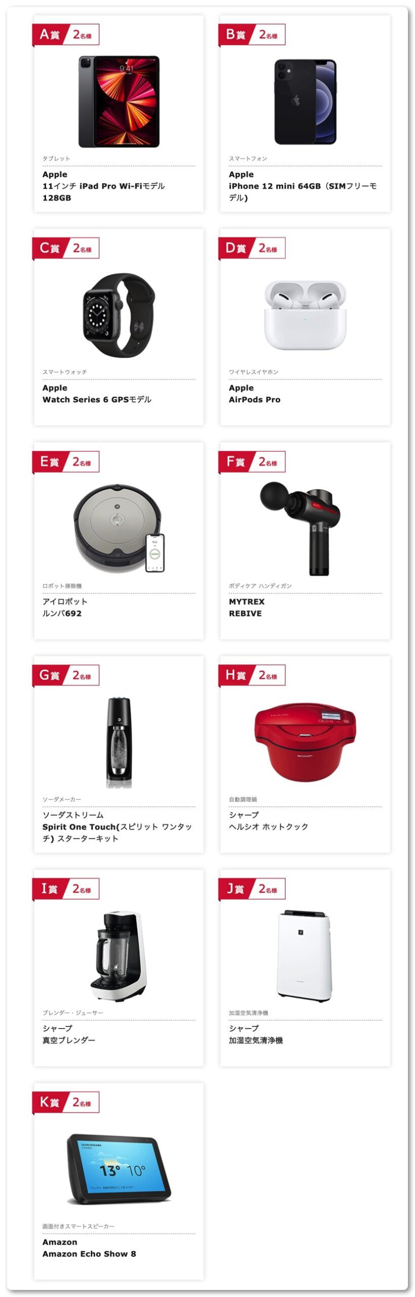 もし、これらに外れてもWチャンスとしてAmazonギフト券10,000円分が300名様に当たります。