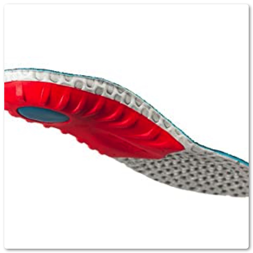 深めのヒールカップが体の左右のブレを防止します。かかとをしっかりと包み込みます。