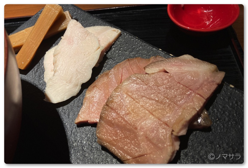 鶏と豚のチャーシューはどちらも低温調理されておりしっとりとした食感。これがめちゃうま。日比野にある「らぁ麺 紫陽花」も低温調理されたチャーシューが美味しいのですが、それを超えているかもしれません。