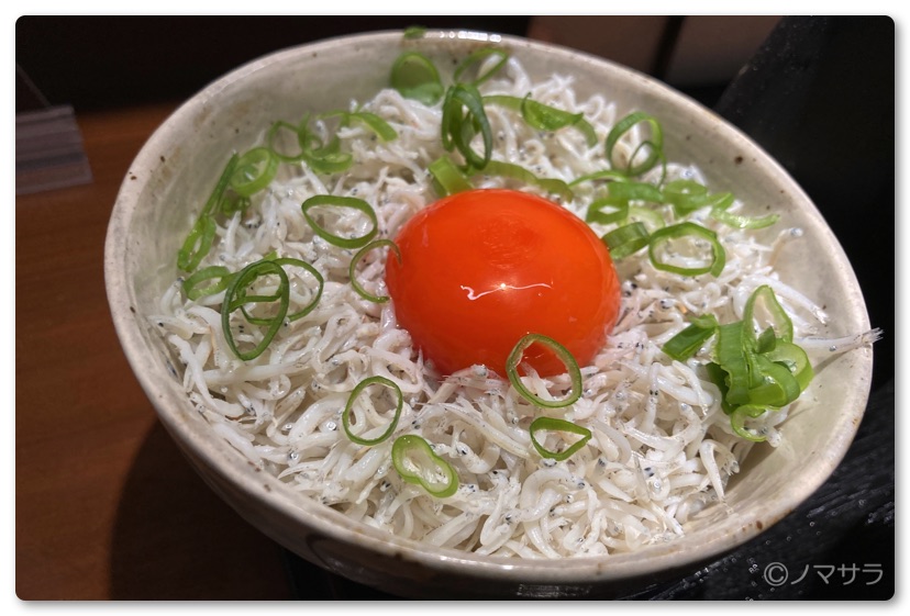 シラス丼を一緒に頼みましたがこれまた絶品。軽く醤油をかけ、濃い黄身の卵を混ぜつつ、最後は残ったスープをかけたらもうたまりません。