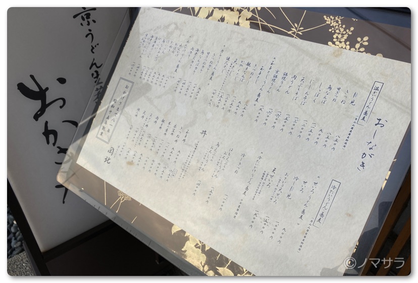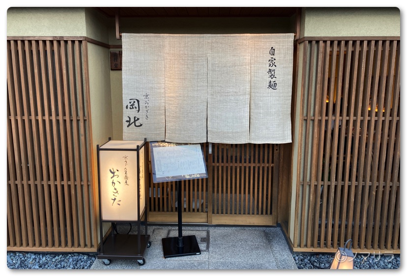 初日の夕食はホテルから歩いて10分ほどのところにある「京うどん 生蕎麦 岡北」へ。事前にウエスティン都ホテル京都へ宿泊したことのある方から情報をいただき、GoogleMap、食べログで調べたら高得点かつ多数のレビューがあったので訪れることに。