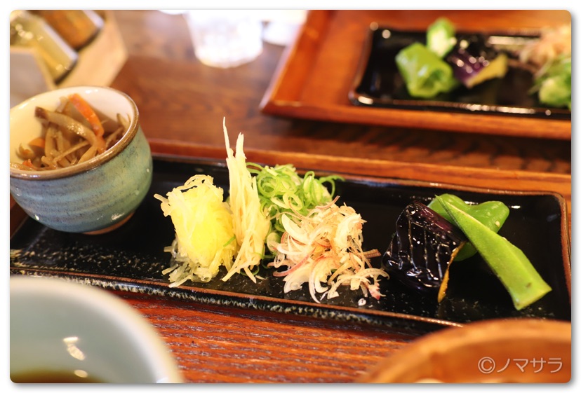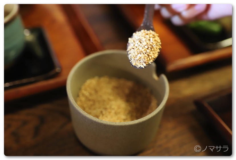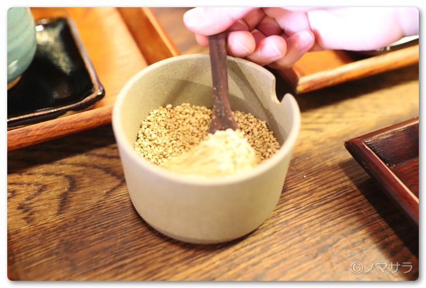 ごまをたっぷりかけて薬味やきんぴらごぼうと一緒にいただきます。