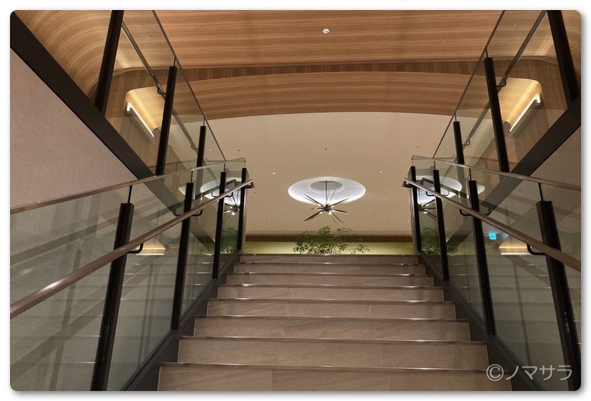 セントレジスホテル大阪は天井が高く居心地がいいのとジュースやコーヒーを何度でも頼めるバトラーサービスが大好評。