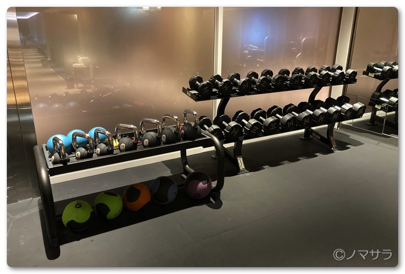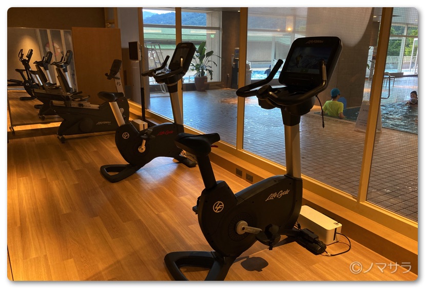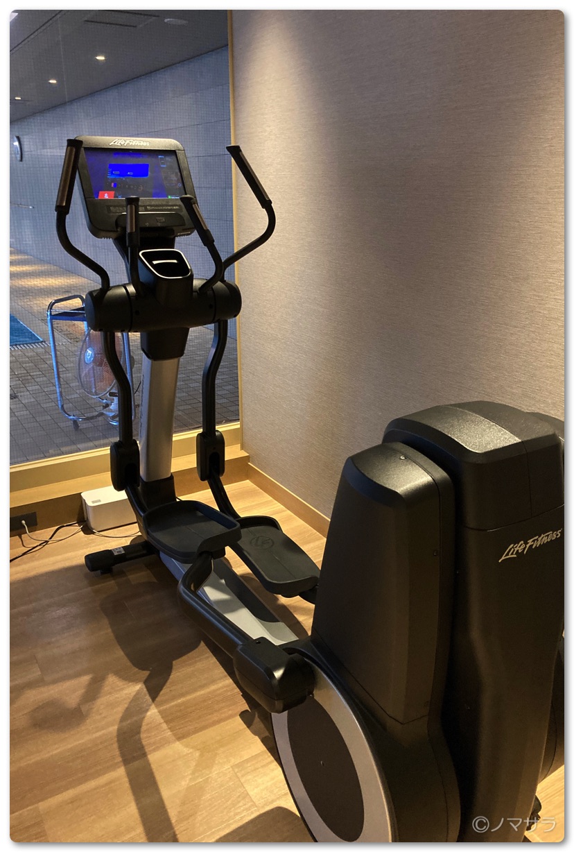 3階にはフィットネスジムとプールがあります。フィットネスジムは本格的な筋トレマシンが12台あるほか、ダンベル、エアロバイク、ルームランナーなどが完備されており、ワタクシが訪れたマリオット系列のホテルの中では一番充実しています。
