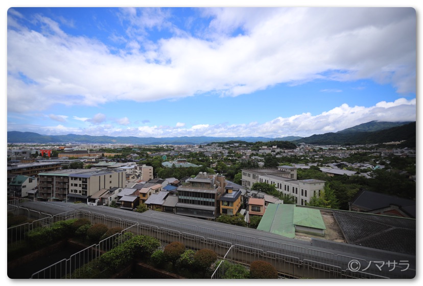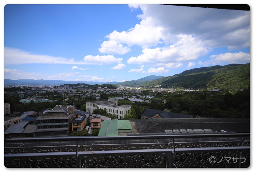 窓の外はベランダがあり平安神宮を左手に市内を見渡すことができます。