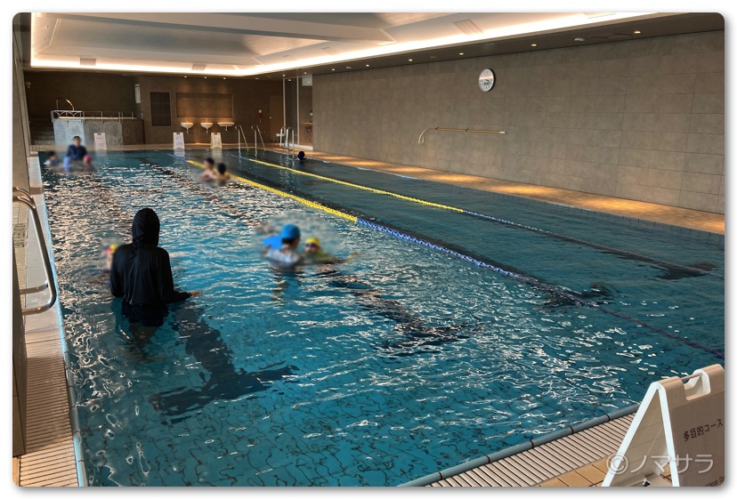 屋内プールは4レーンあり2コースは遊泳専用となっています。