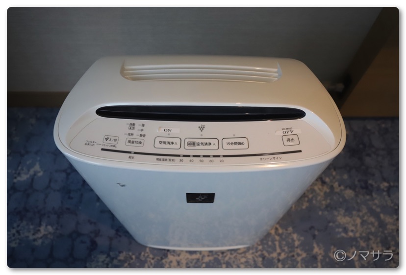 加湿のできる空気清浄機が完備されていますので部屋の乾燥を防ぐことができます。感染症対策としても有効。