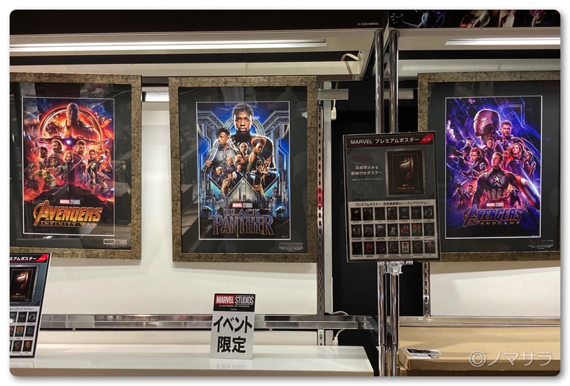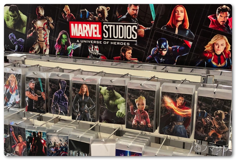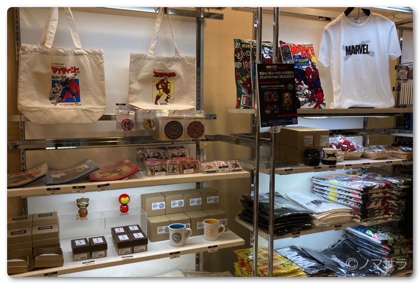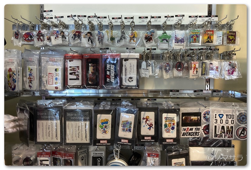 会場を出たら、キーホルダー、クリアファイル、フィギュア、Tシャツなどありとあらゆるグッズが置いてあります。マーベルファンにとってはかなりの危険地帯(笑)