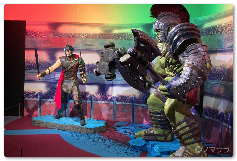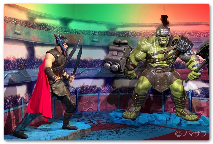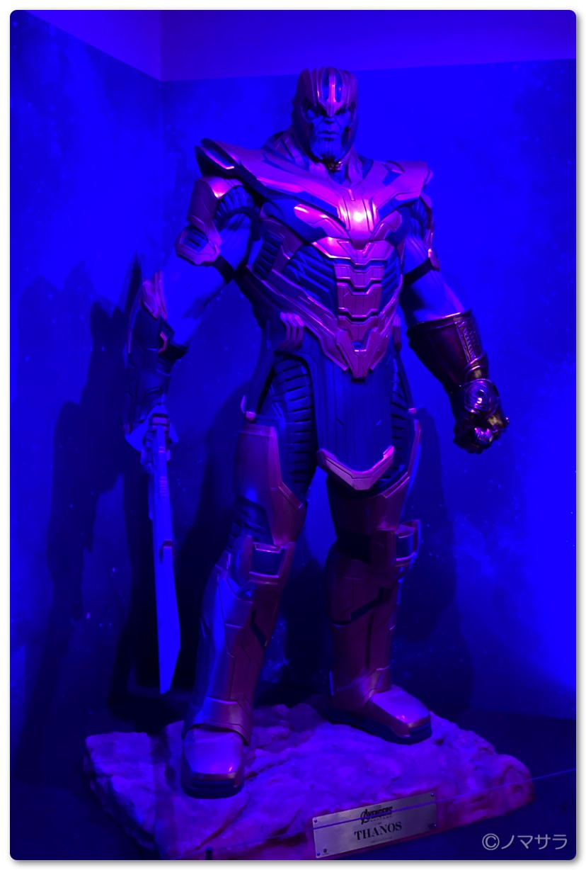 その他、マイティ・ソーやハルク、サノスなども等身大で展示されており、かなりの迫力。