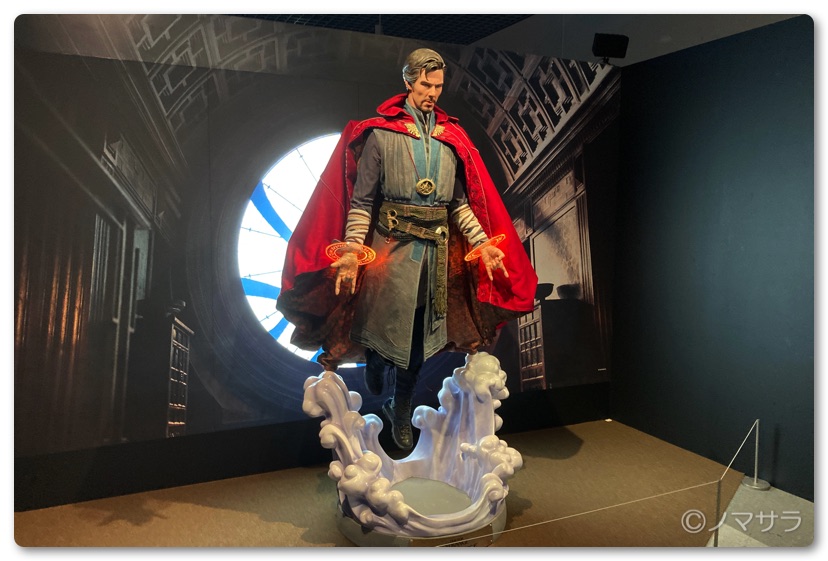 ドクター・ストレンジの等身大フィギュアと魔法陣を体験できるコーナーがありました。