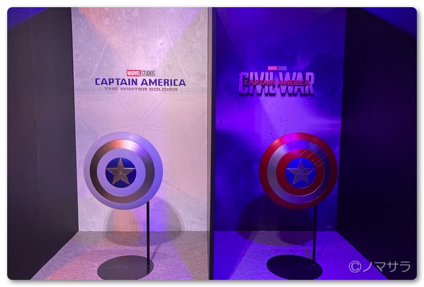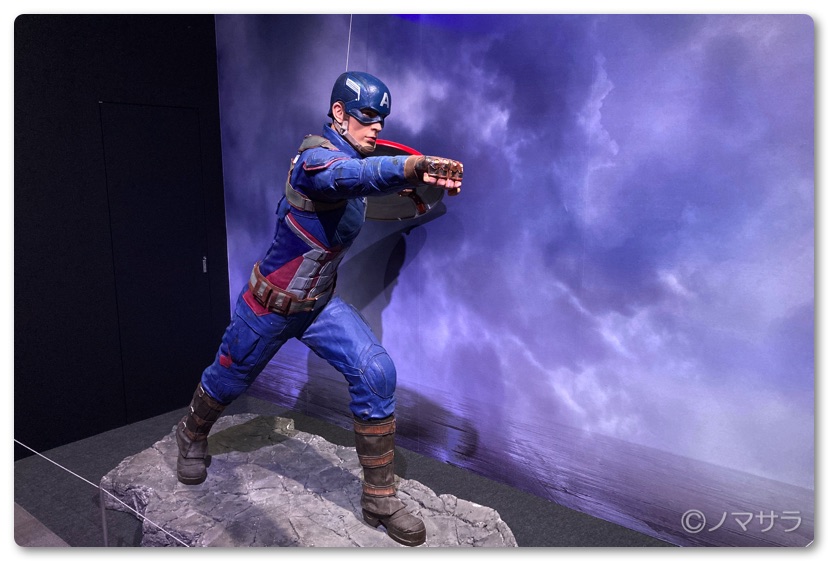 今回のマーベル展ではキャプテン・アメリカ、アイアンマン、ソー、ブラック・ウィドウ、ブラックパンサーなど、マーベル・ヒーローたちを象徴するアイテムが身近に展示され、その世界観の中で、写真を撮りながら楽める体験型のイベントになっています。
