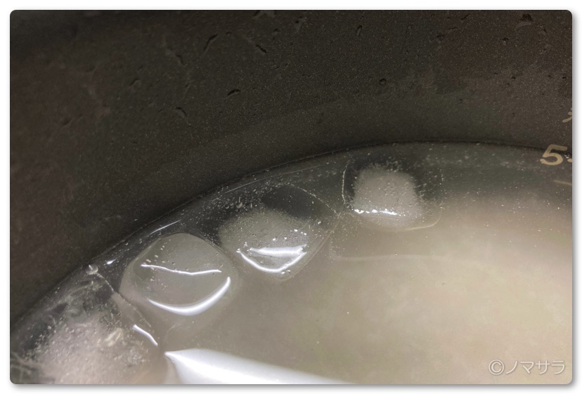 炭酸水&氷を入れて炊くことにより、よほどのバカ舌でない限りブラインドテストしたら絶対にわかるほど甘みが増して美味しくなります。我が家は妻の実家から精米したての新米をもらっているので今までもお米自体が美味しかったのですが、さらに劇的に美味しくなりました。